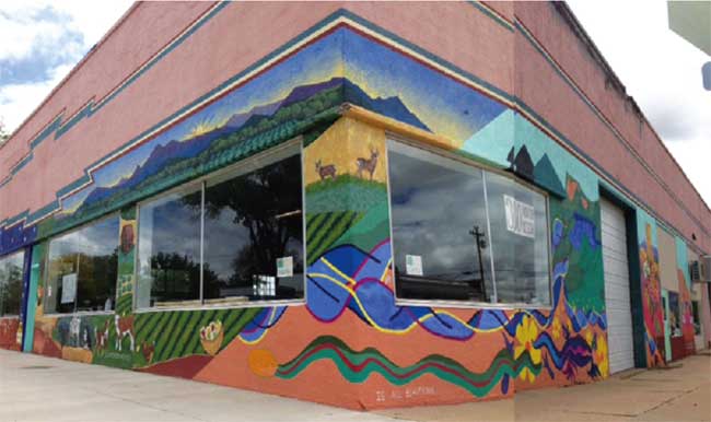 The Sharehouse project garnered the collaborative support of local professional and novice artists in October 2018. The mural on the wall, titled, “Four Seasons and a Banquet,” branded the Sharehouse building at North and Beech streets in Cortez, which was formerly occupied by Axl’s Glass. The mural celebrates the ongoing work of the project to create a facility for local food access, education, and culture. Courtesy photo.